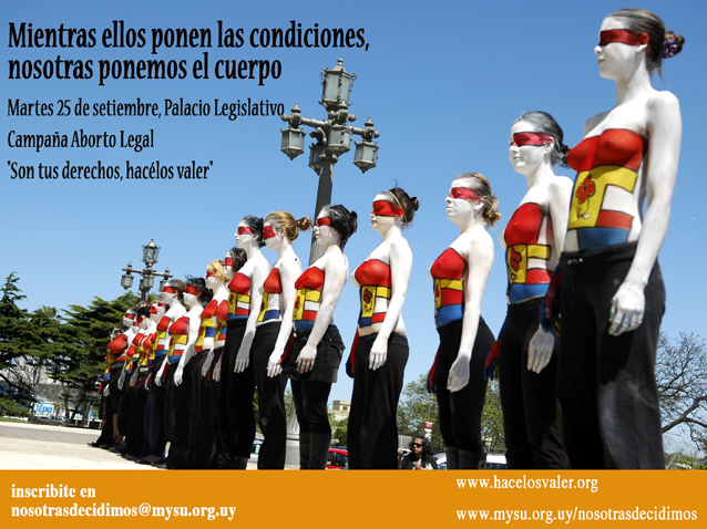 September 25 – “MIENTRAS ELLOS PONEN LAS CONDICIONES, NOSOTRAS PONEMOS EL CUERPO” (While they are putting conditions, we are putting our bodies) – performance by women with painted bodies in the gardens of “Palacio Legislativo” (zona de entrada a Cámara de Diputados).